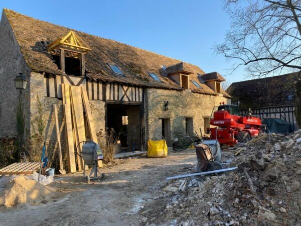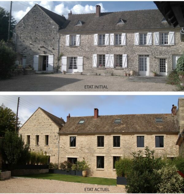 Corps de ferme typique du Vexin français constitué de plusieurs bâtiments datant de diverses époques. Division des bâtiments en 5 logements dont 1 studio, 2 maisons de 80m², 1 maison de 100m², et 1 maison de 180m². Réhabilitation de l’ensemble. Mise aux normes en vue de locations. Amélioration des performances thermiques (isolation, double-vitrage, changement du système de chauffage, chauffage partiel au bois, etc.)