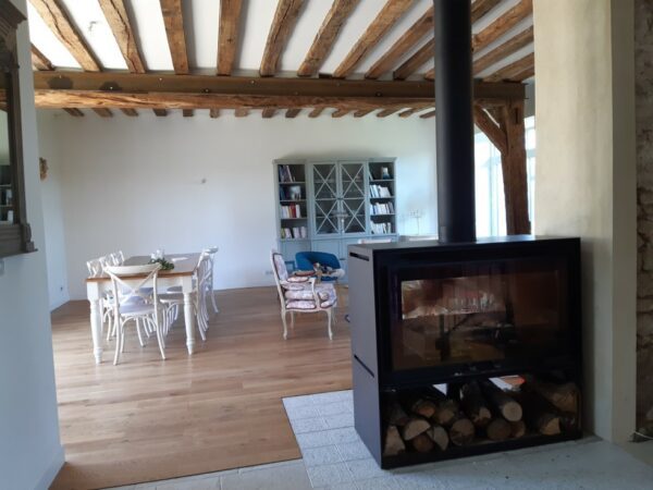 Les bâtiments réhabilités ont une haute performance énergétique : isolation ultra performante, plancher chauffant, chauffage par pompe à chaleur et poêle de masse.